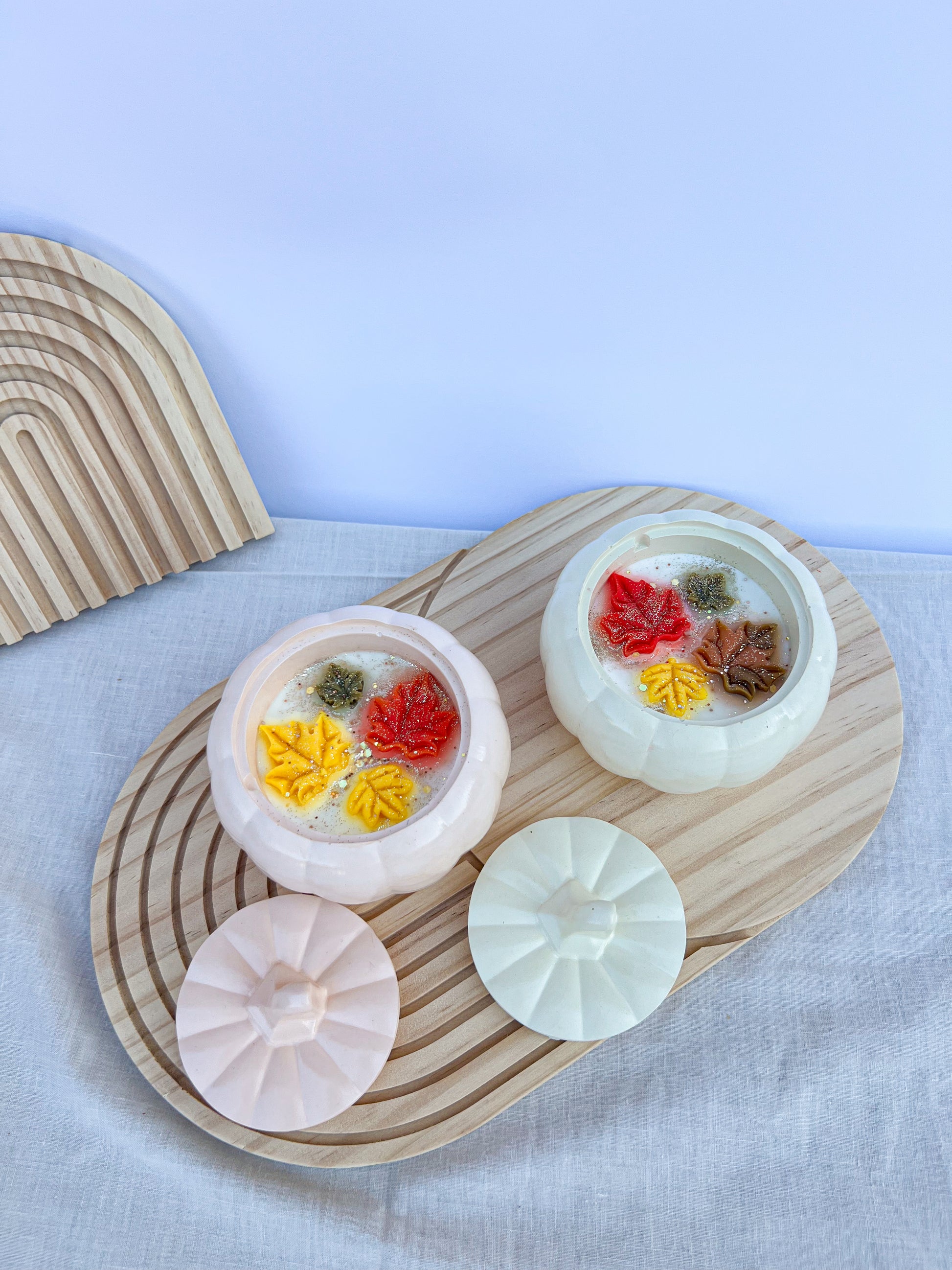Η αρωματική μας κολοκύθα γεμίζει τον χώρο με νότες κανέλας, γαρύφαλλου και γλυκιάς κολοκύθας. Cozy, φθινοπωρινό και χειροποίητο κερί σόγιας σε συλλεκτικό βαζάκι-κολοκύθα που γίνεται και διακοσμητικό.